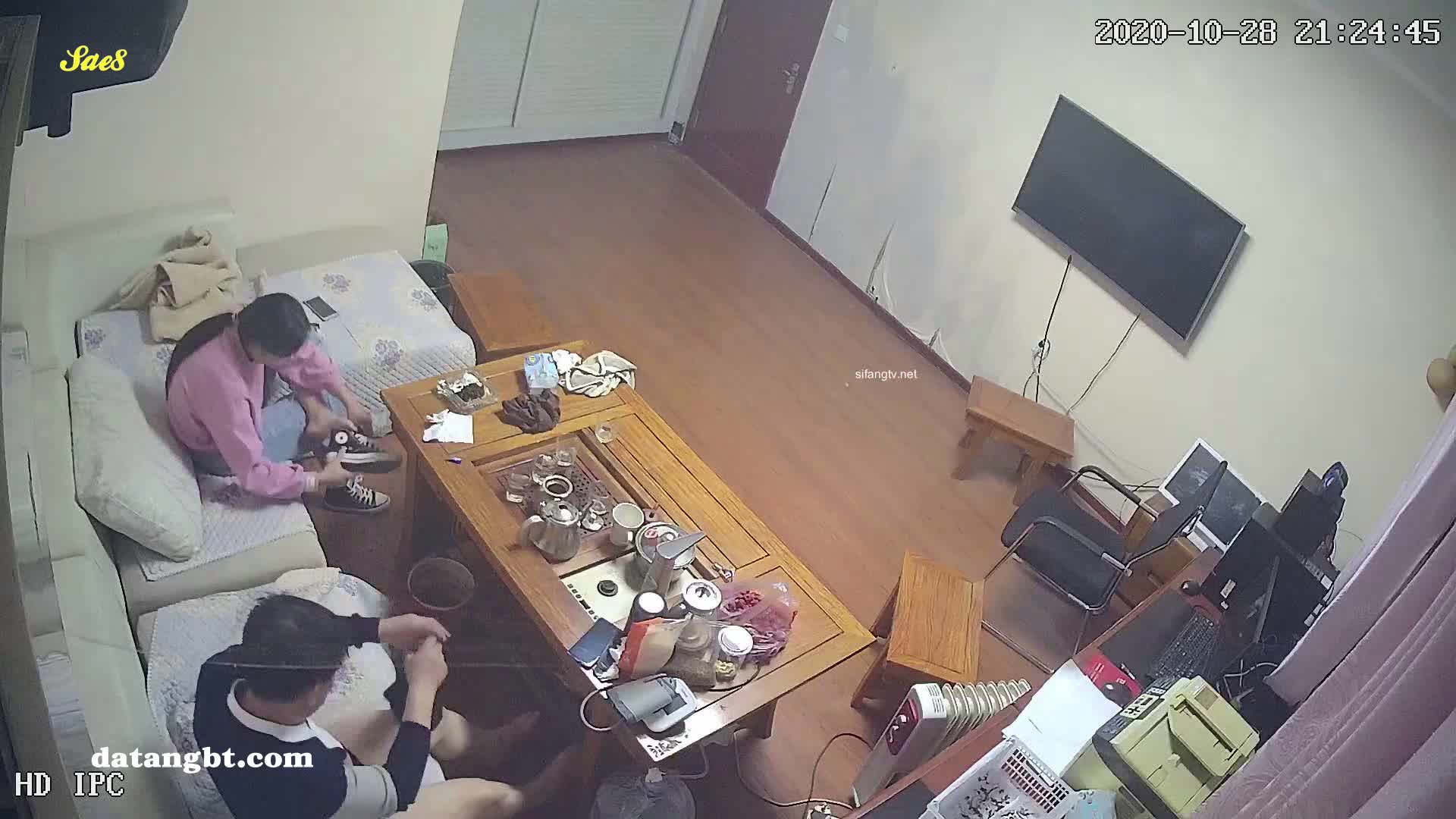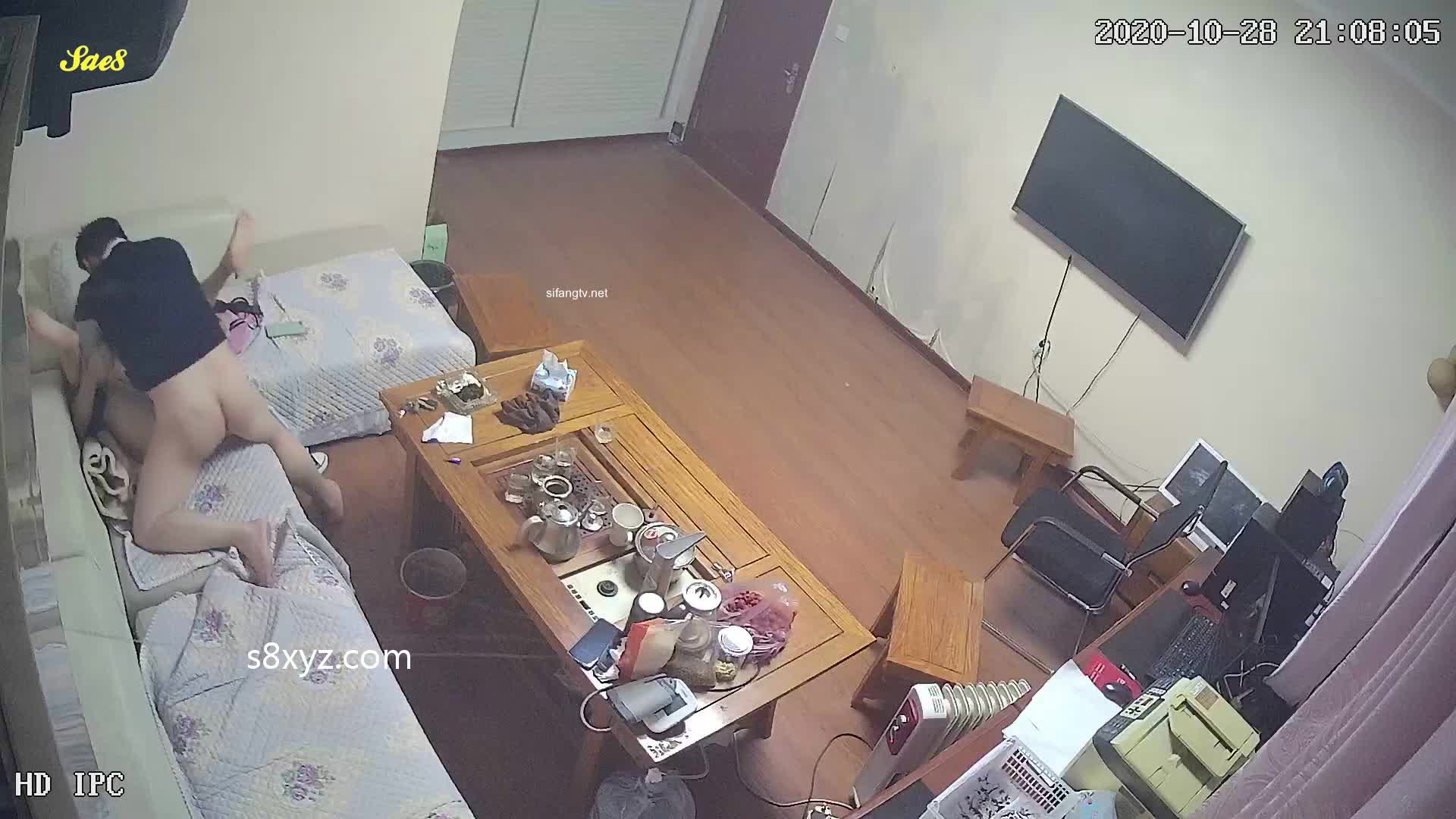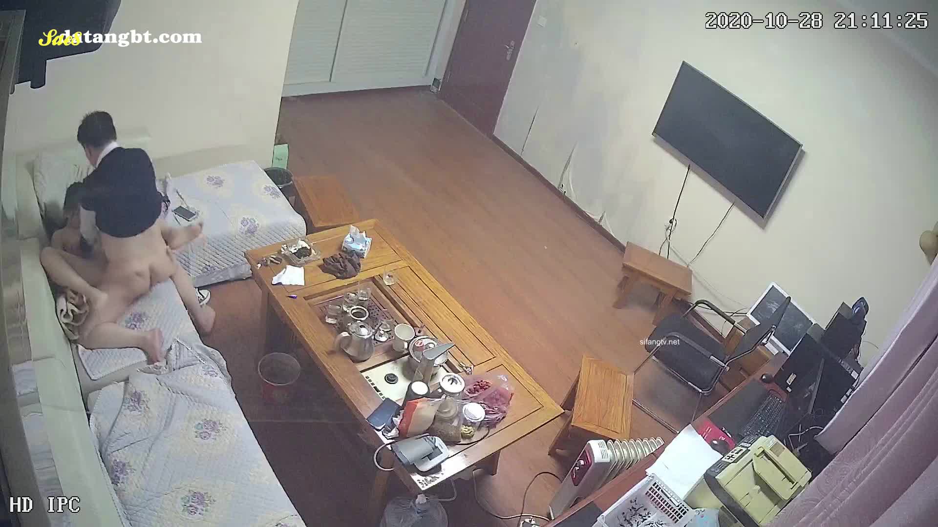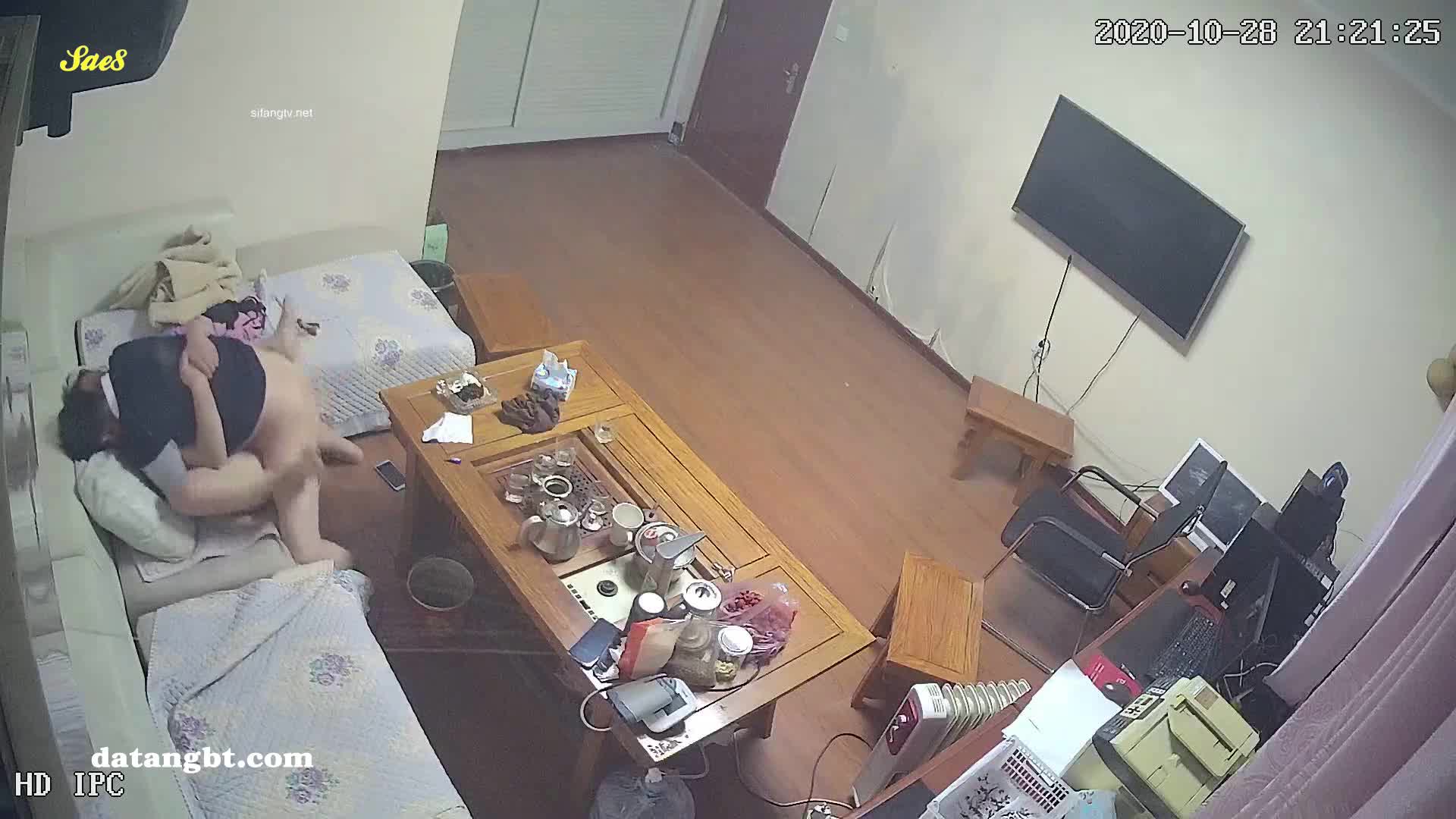 摄像头偷拍老领导打着工作的名号夜访单身女下属沙发半推半就做爱被房东拍下全过程。